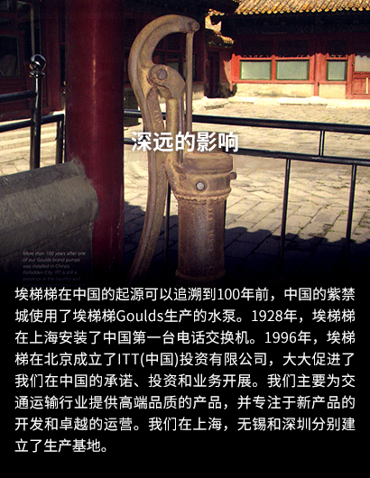 埃梯梯是一家为能源、交通运输和工业市场提供高性能主要部件和定制化技术解决方案的多元化制造商。基于我们的工程技术传承,我们与客户合作,为我们现代化生活方式中的关键行业提供持久的解决方案。埃梯梯公司创立于1920年,总部位于纽约州白滩(White Plains),拥有来自35个国家的约9400名员工,并在100多个国家进行销售。我们致力于为所有利益相关者创造长期可持续的价值。这一目标体现在ITT之道中,它着重于三个主要原则:领先的技术、客户差异化服务和优化我们的工作。